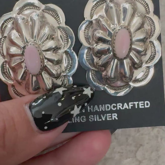 Concho Earrings with Pink Stone - Sterling Silver - Native Handmade - Y (artist)