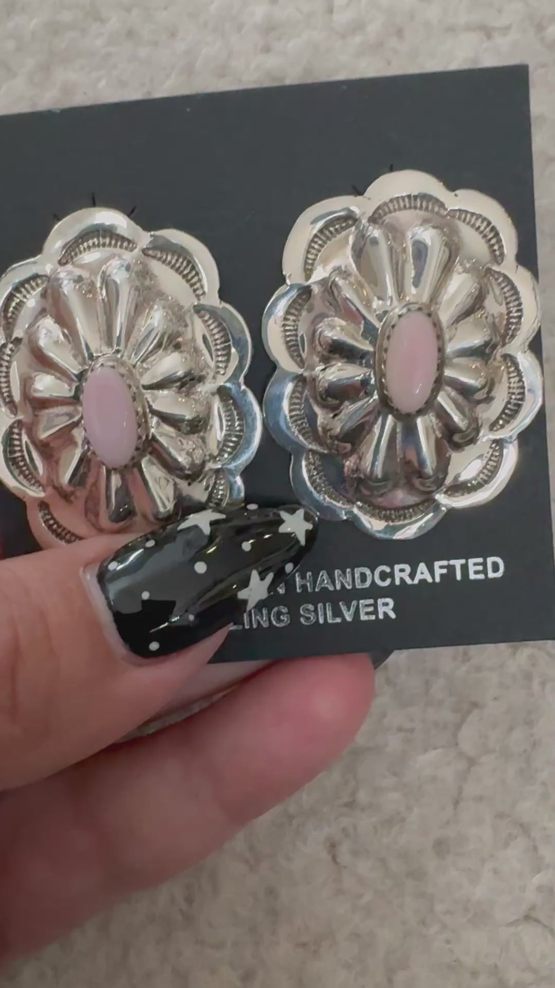 Add a splash of color and charm with these playful Concho Earrings featuring a pale pink stone set in sterling silver. Handcrafted by Native artist Y, each pair brings a unique touch of artistry and whimsy to your look. Perfect for those who love a fun, handcrafted accessory that stands out!