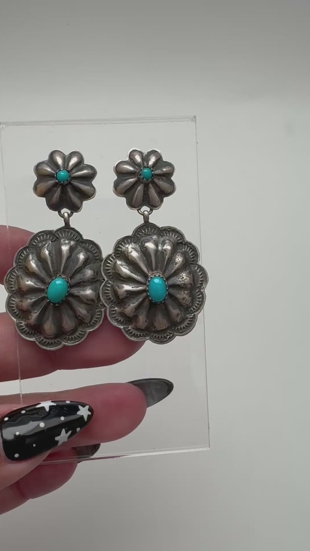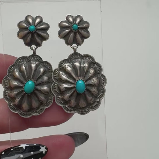 Double Concho Turquoise Earrings - Sterling Silver - Native Handmade - RL (artist)