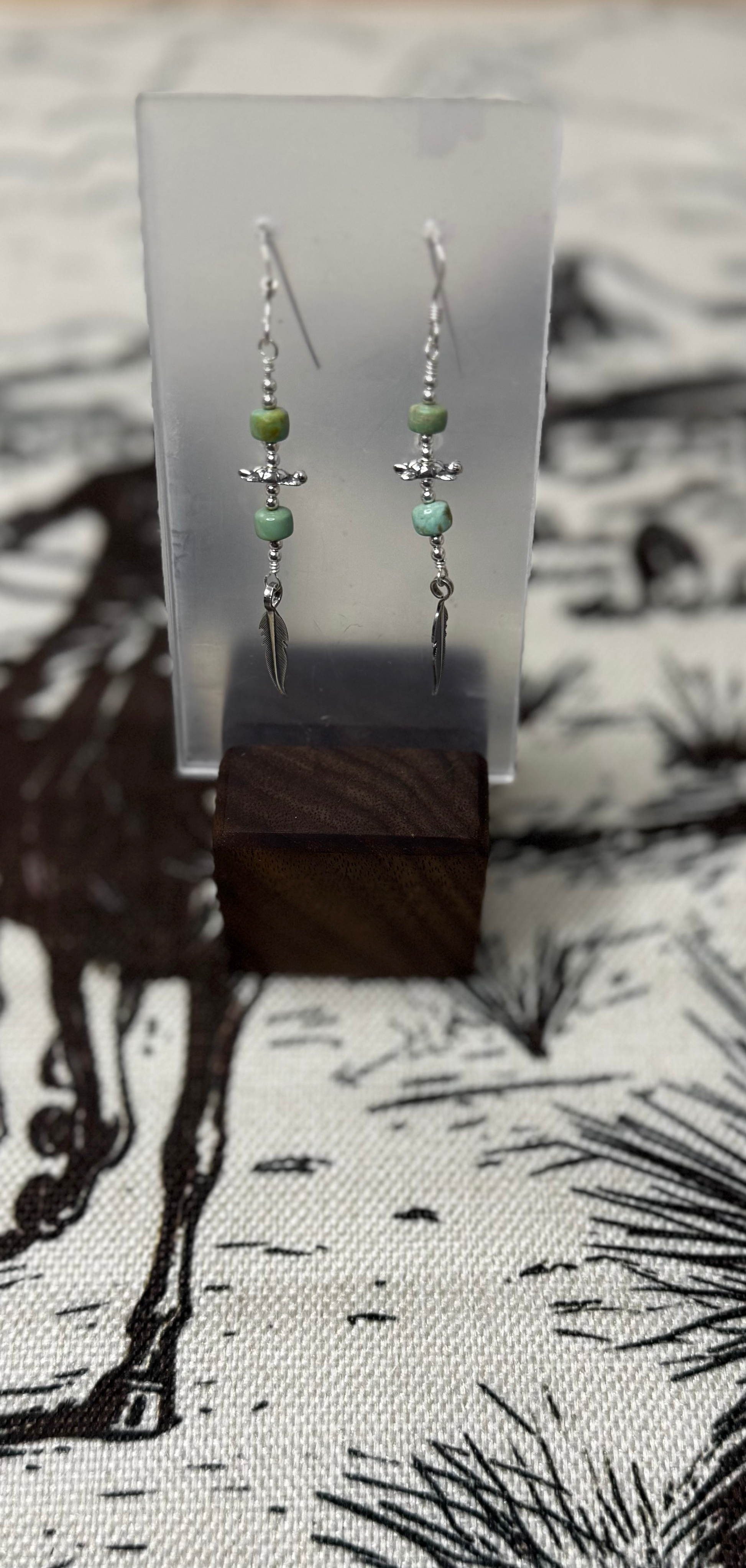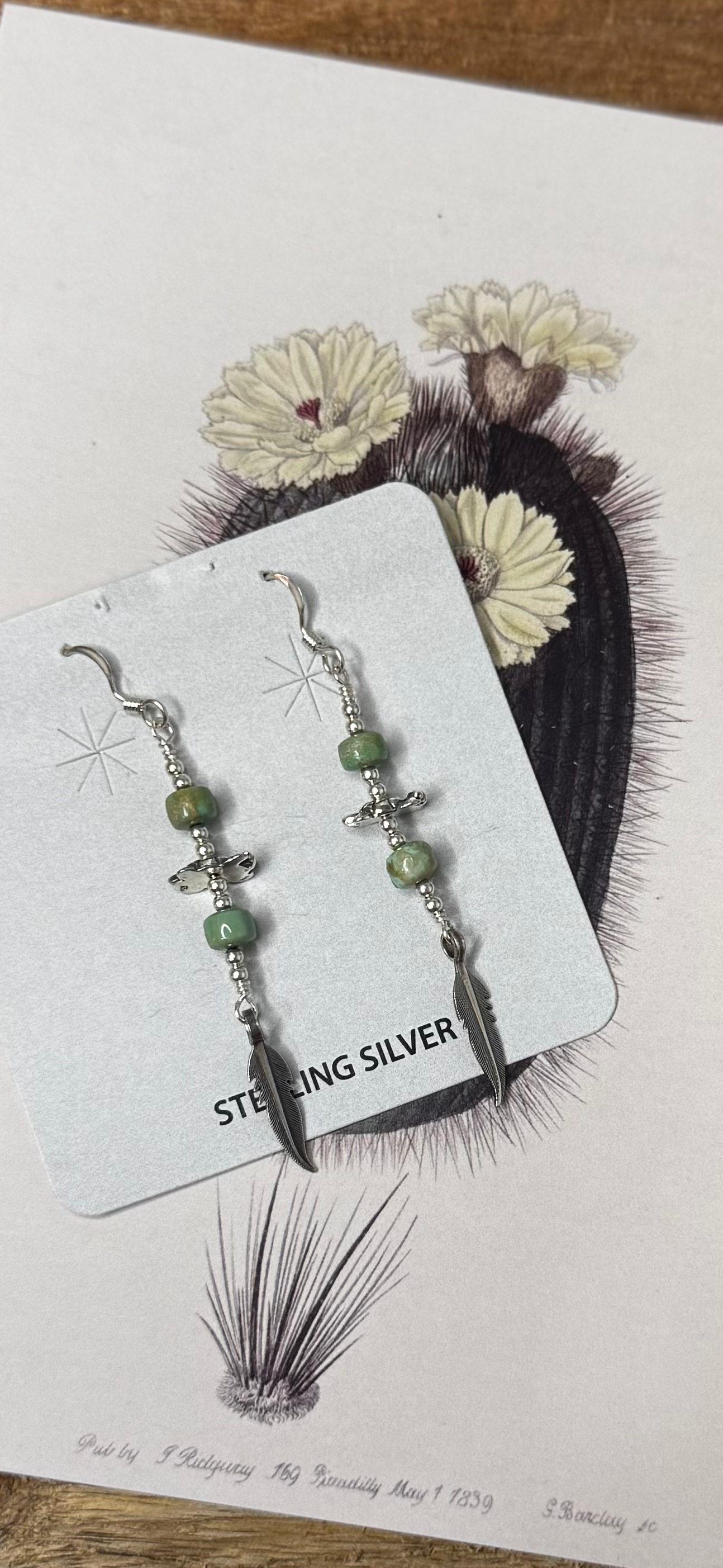 Turtle Feather Turquoise Dangle Earrings - Sterling Silver
