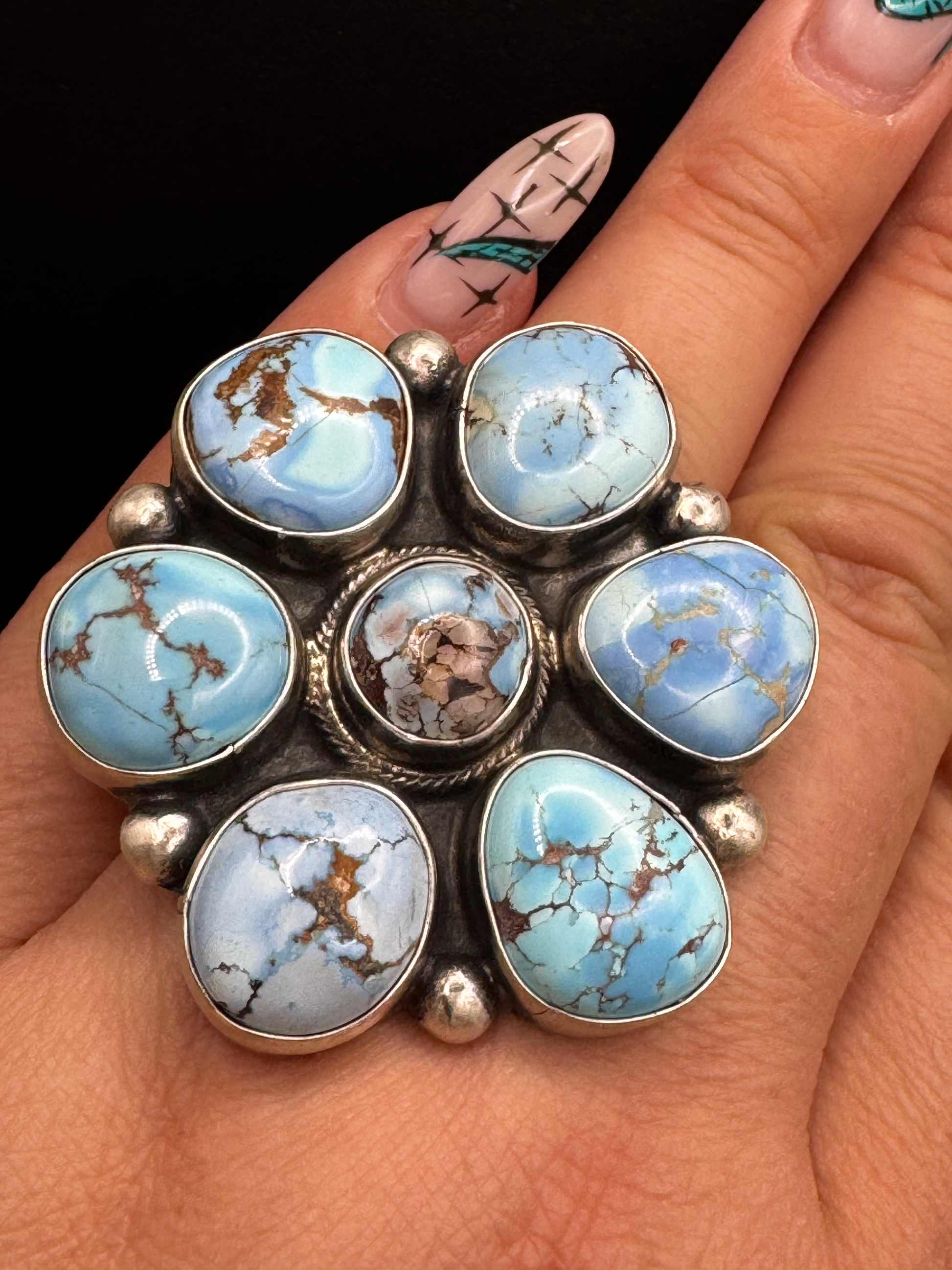 Cluster Ring—Golden Hills Turquoise—Sterling Silver—Native Handmade—Bob Becenti (artist)—