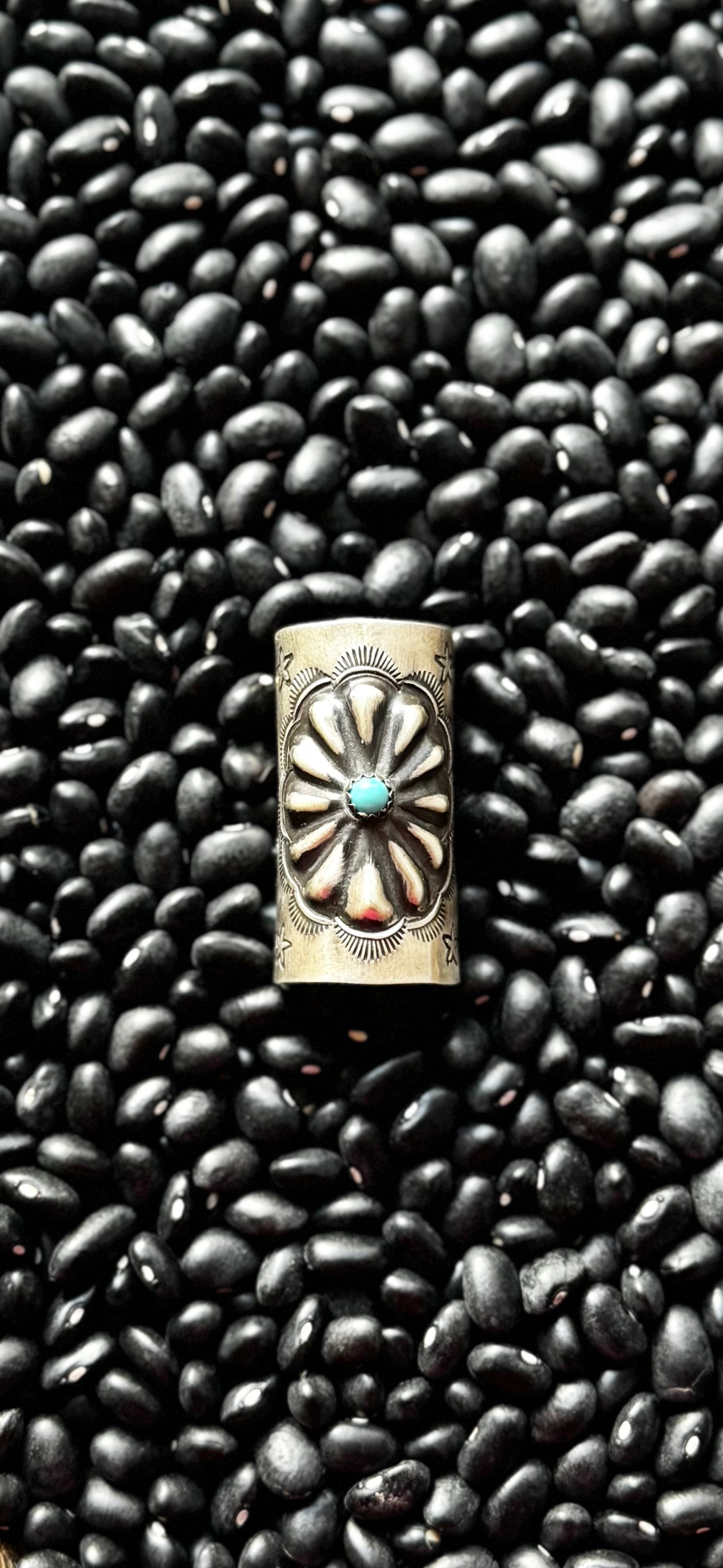 Elevate your hairstyle with this sophisticated hair tie featuring a concho design crafted from sterling silver and accented with vibrant turquoise. This elegant accessory combines timeless craftsmanship with a pop of color, offering both durability and refined style for everyday wear or special occasions.