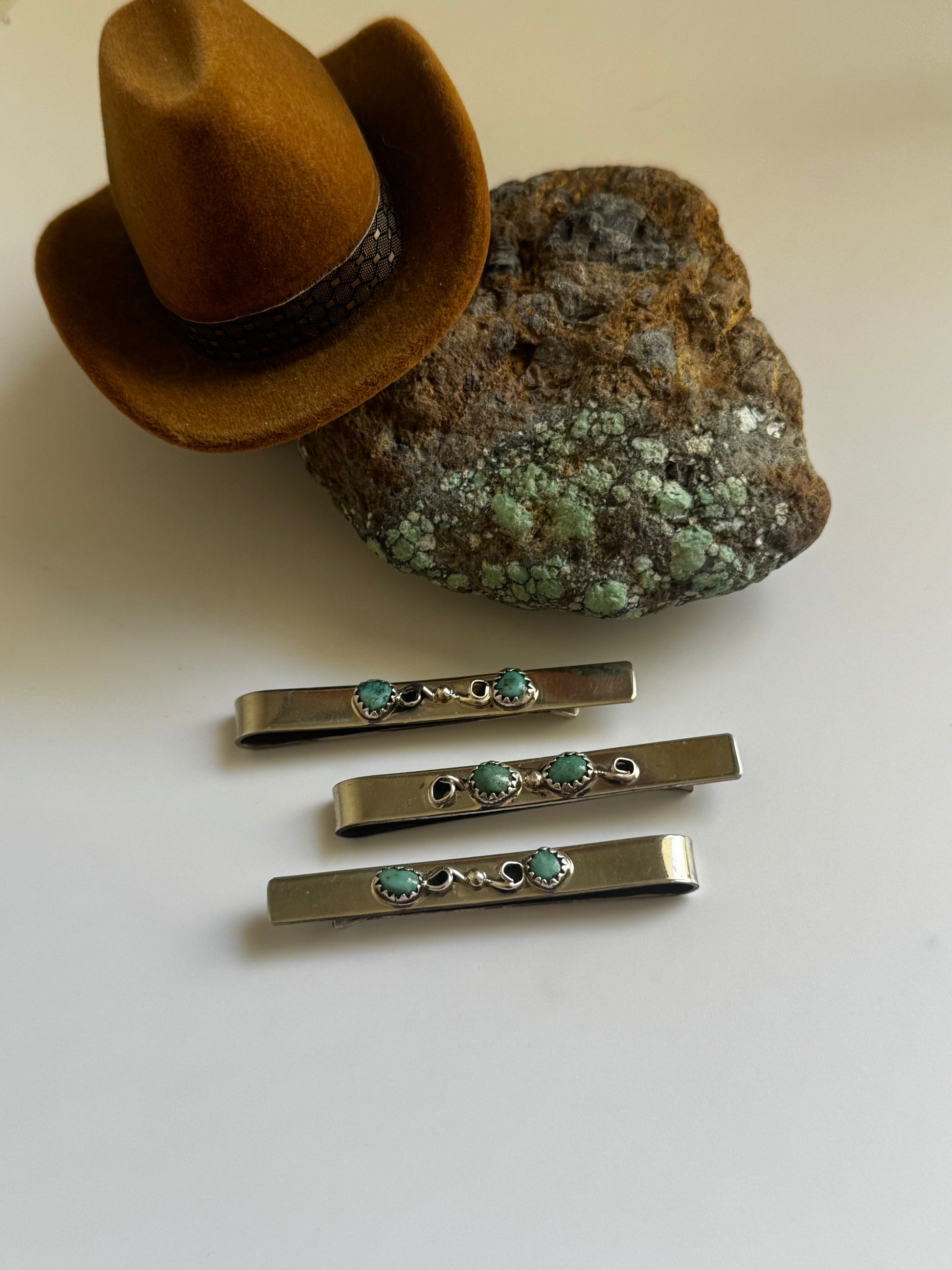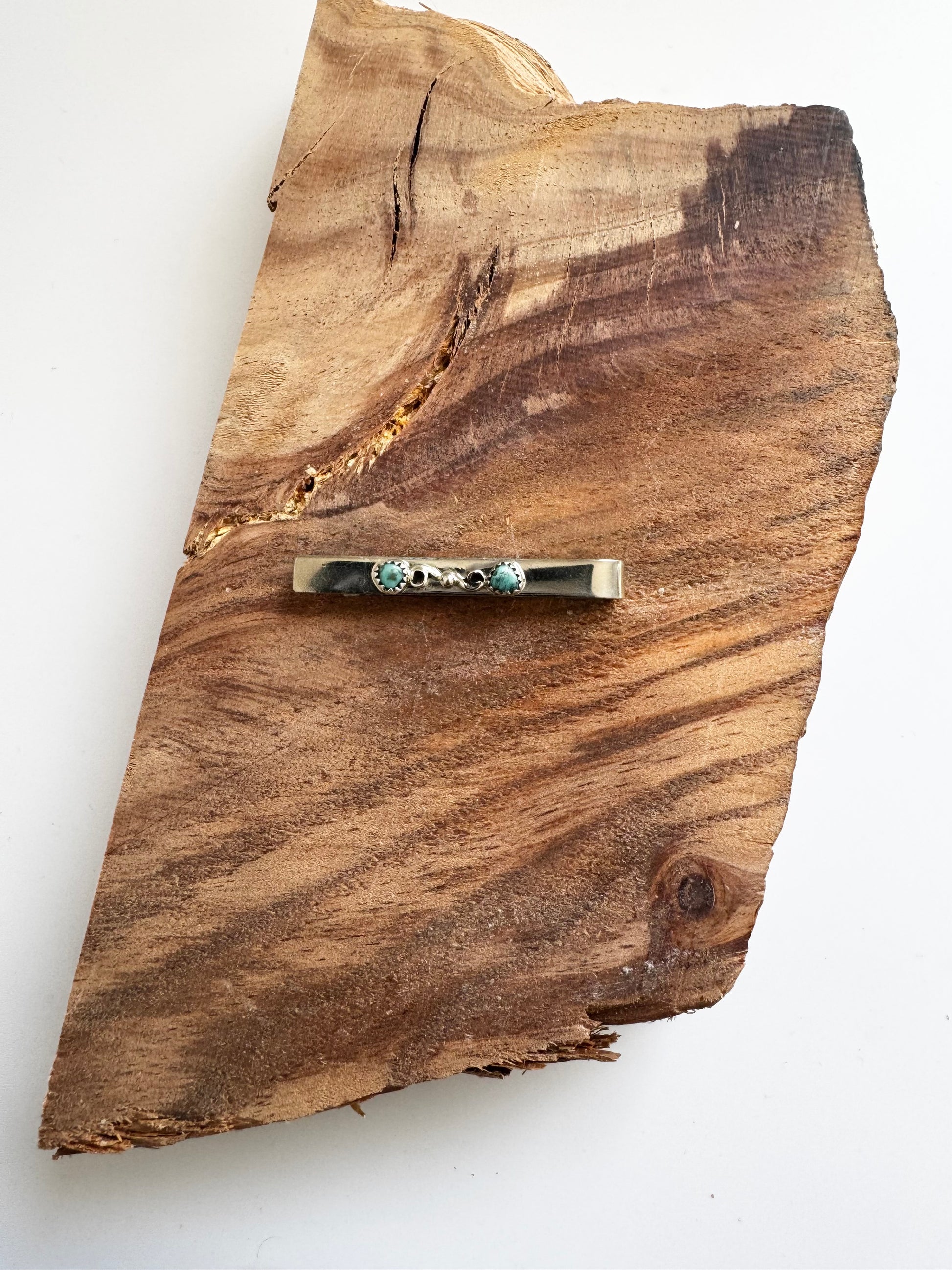 Kingman Turquoise - Tie Clip - Sterling Silver - Native Handmade - Dorothy Yazzie (Artist)