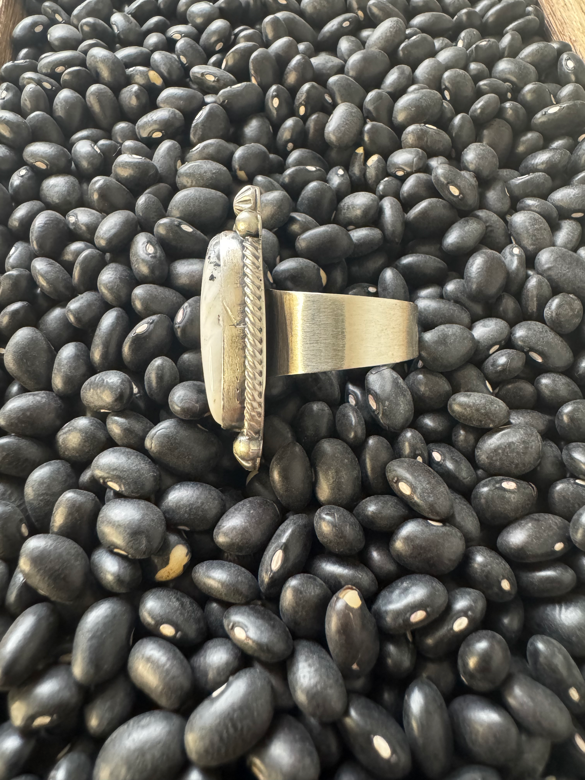 Large Ring—White Buffalo—Sterling Silver—Native Handmade—MB (artist)—Size 9.75
