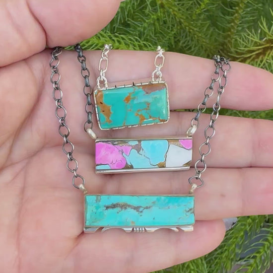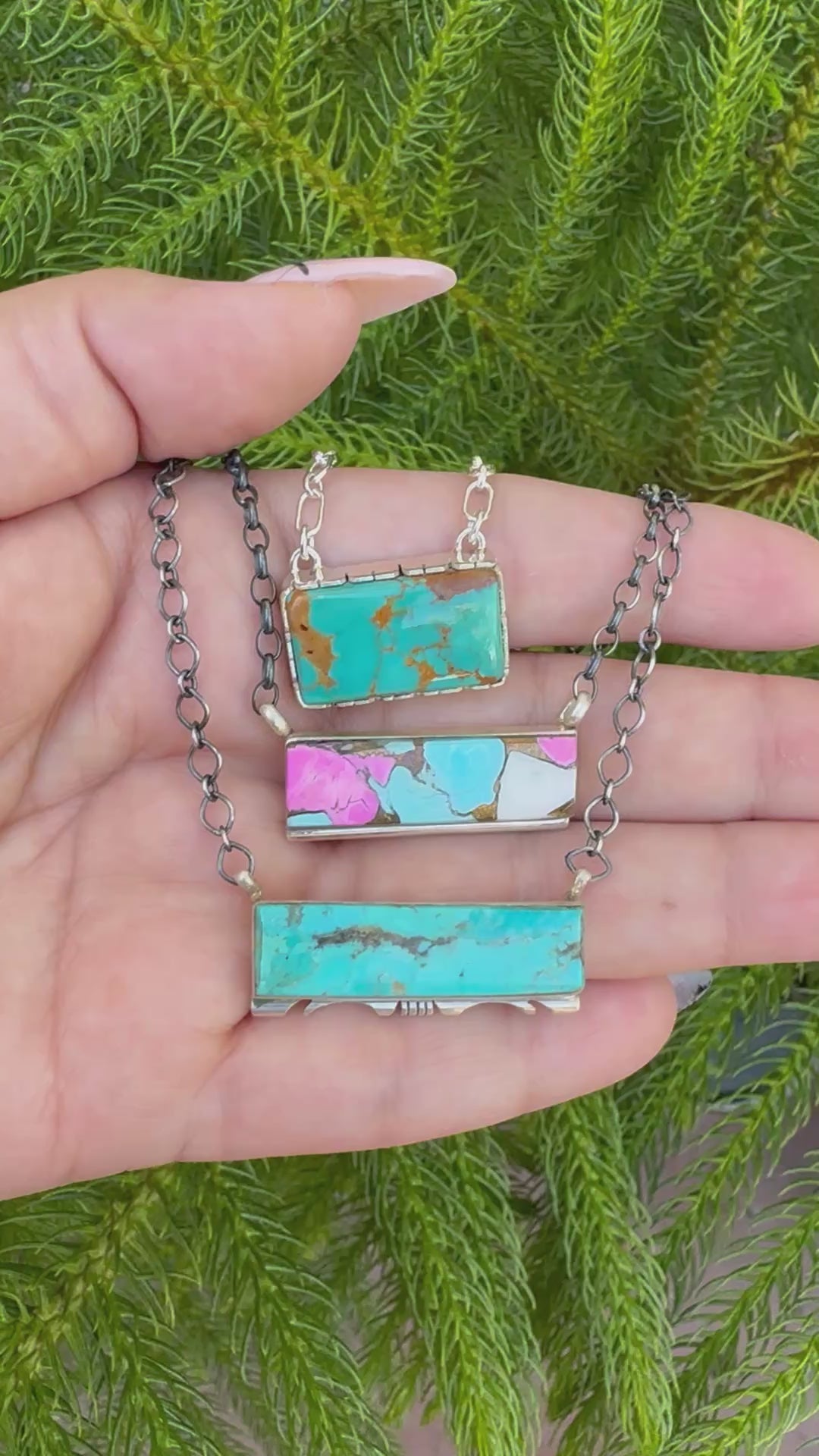 Necklace Bar with Stone - Cotton Candy Stone - Sterling Silver - Native Handmade - Steve Francisco (artist)