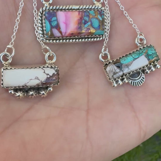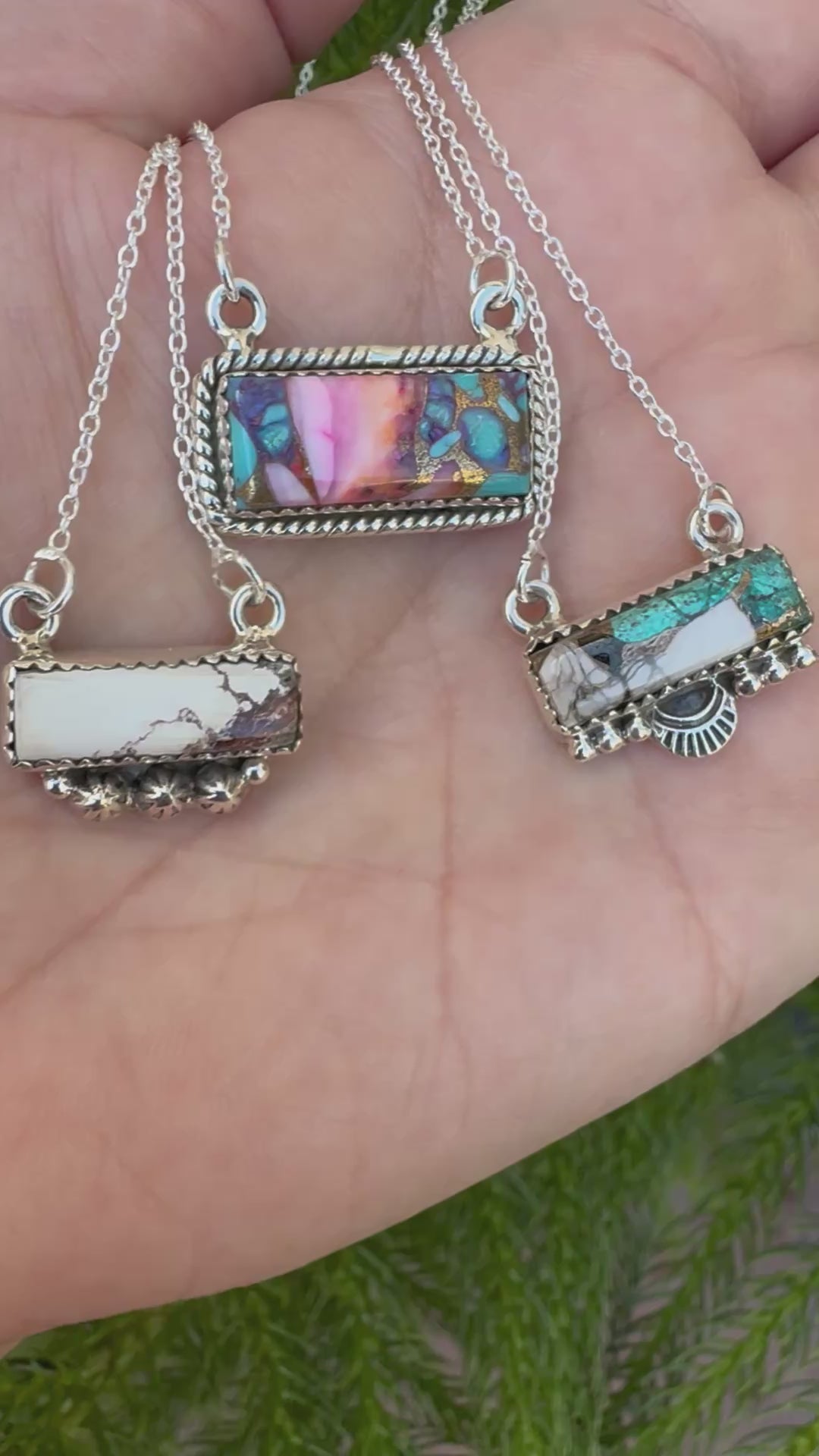 Necklace Bar—Pink Dahlia Stone—Sterling Silver