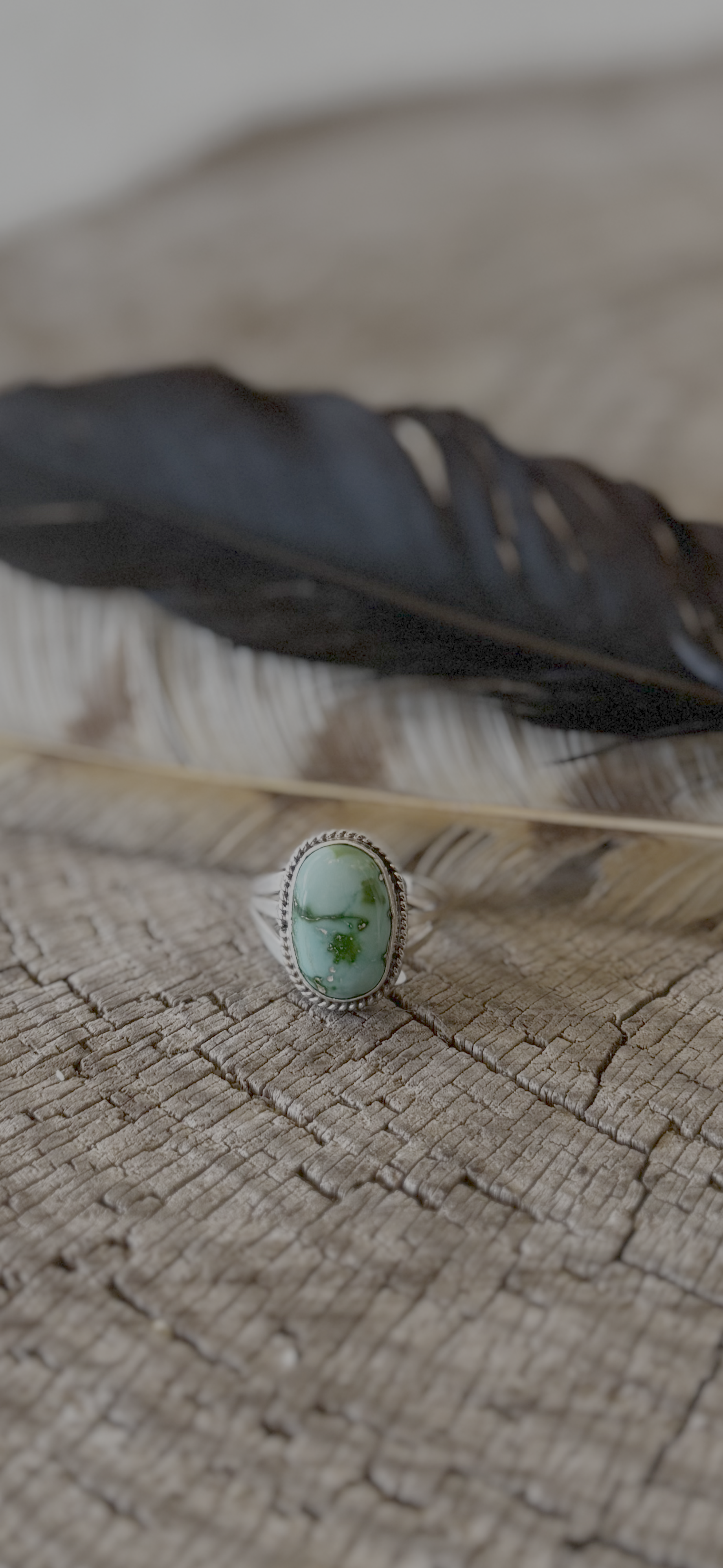 Oval Ring - Sonoran Gold Turquoise - Sterling Silver - Native Handmade - Judy Largo (artist) - Size 10