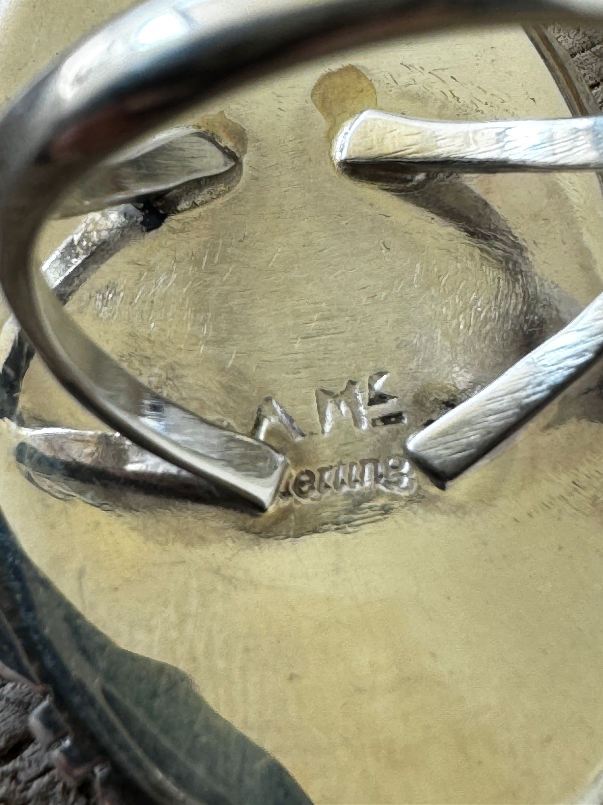 Oval Ring - White Horse - Sterling Silver - Native Handmade - AM (artist) - Size 9.75