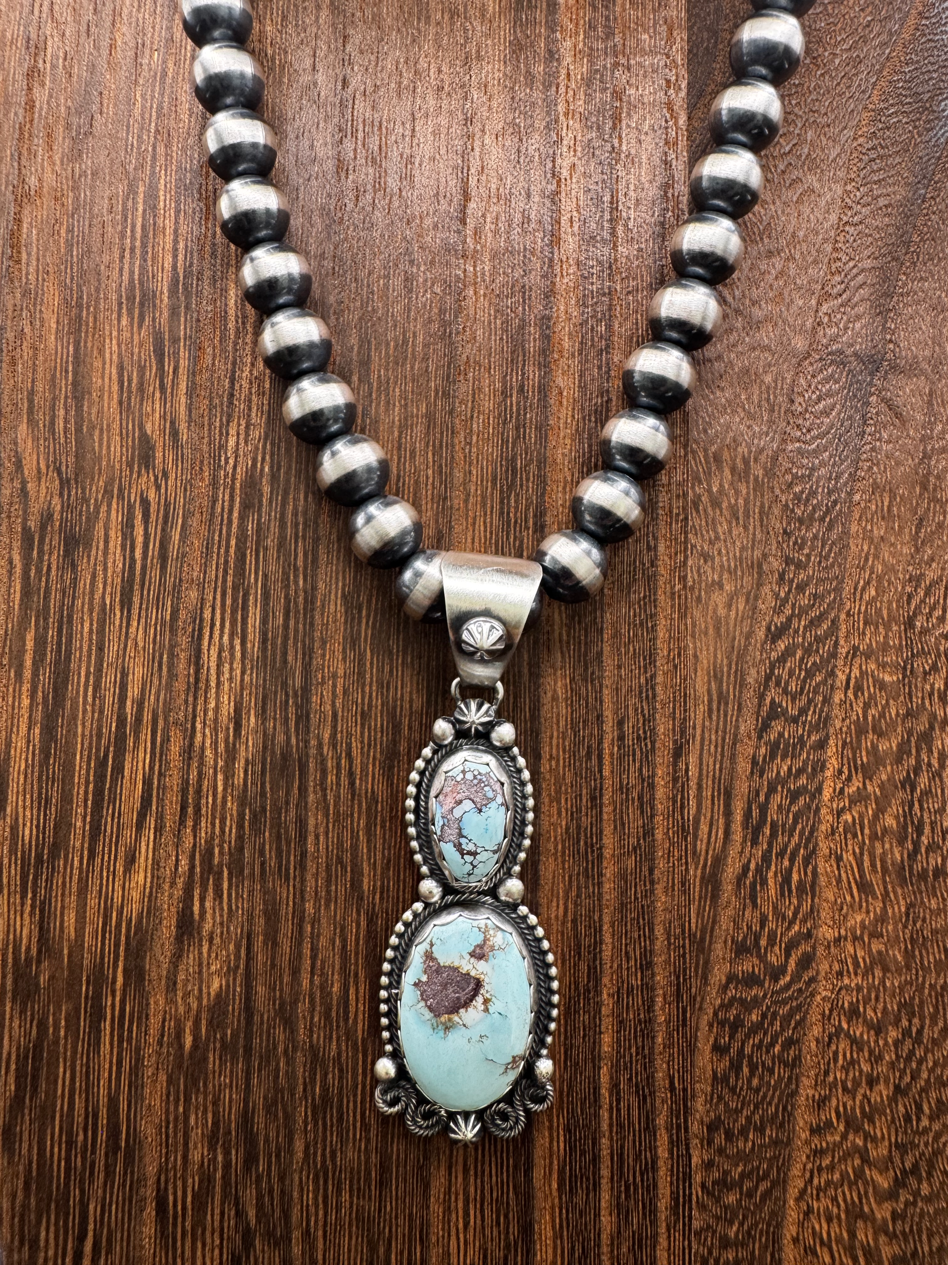 Double Oval Stone Pendant - Golden Hills - Sterling Silver - Bringston (artist)