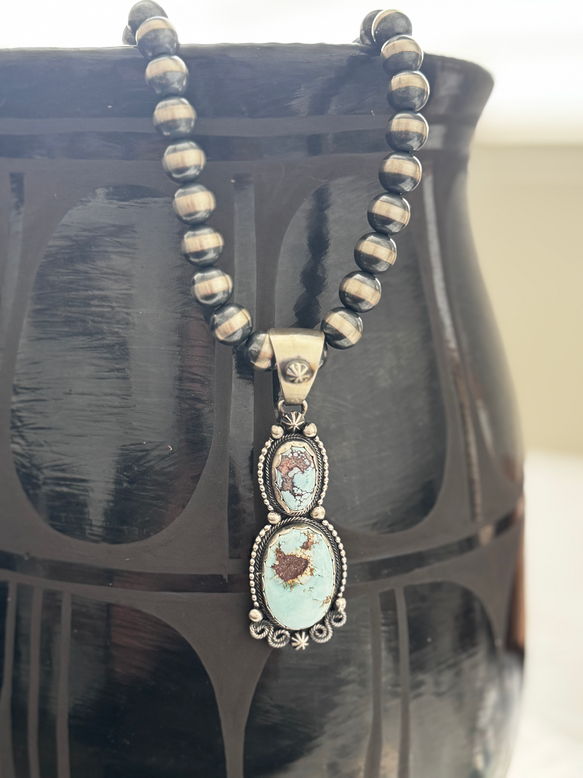 Adorn yourself with this playful double oval pendant featuring the mesmerizing Golden Hills stone. Handcrafted in sterling silver by the talented Bringston, this piece brings a touch of whimsy to your jewelry collection. Each pendant captures the artist's unique vision, making it not just an accessory but a wearable conversation starter!