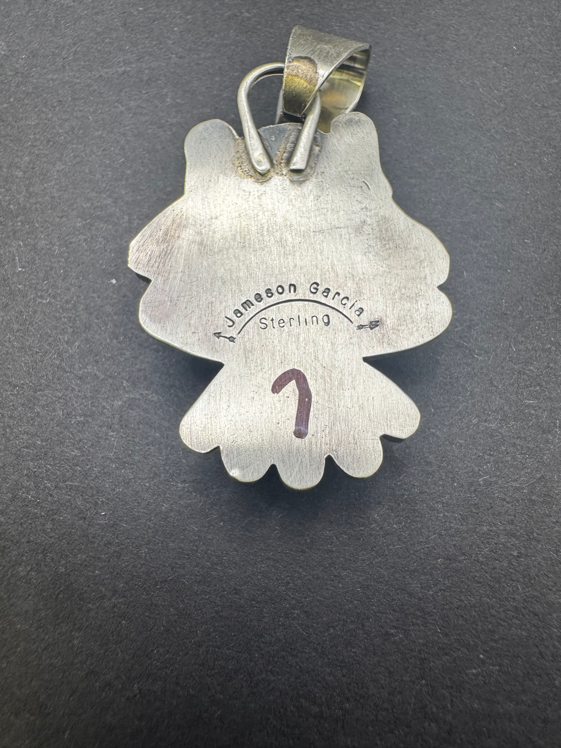 Adorn yourself with this playful teardrop pendant featuring charming ruffled edges! Handcrafted by Native artist Jameson Garcia, this one-of-a-kind piece showcases stunning Palomino Turquoise nestled in sterling silver. The perfect statement piece to add a splash of southwestern flair to any outfit!