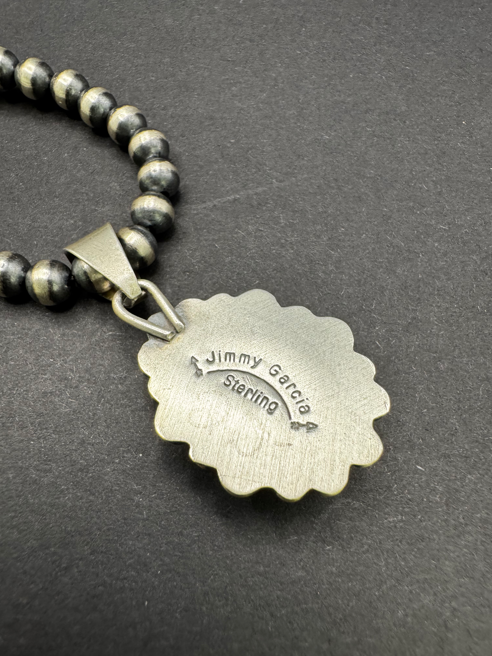 Dive into vibrant ocean-inspired elegance with this playful orange spiny oyster pendant! Handcrafted by Native artist Jimmy Garcia, this eye-catching piece showcases the natural beauty of spiny oyster shell set in gleaming sterling silver. Add a pop of coastal color to any outfit with this one-of-a-kind treasure that's sure to spark conversations!