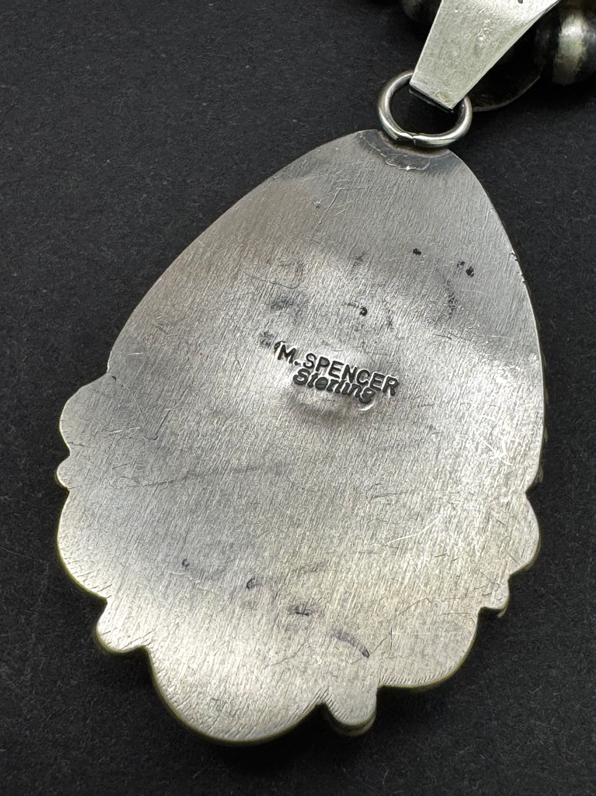Capture the essence of Native artistry with this playful Tear Drop with Ruffles Pendant! Handcrafted by Spencer, this unique piece features stunning White Buffalo stone nestled in sterling silver with charming ruffle details. A conversation starter that adds personality to any outfit while celebrating authentic indigenous craftsmanship.