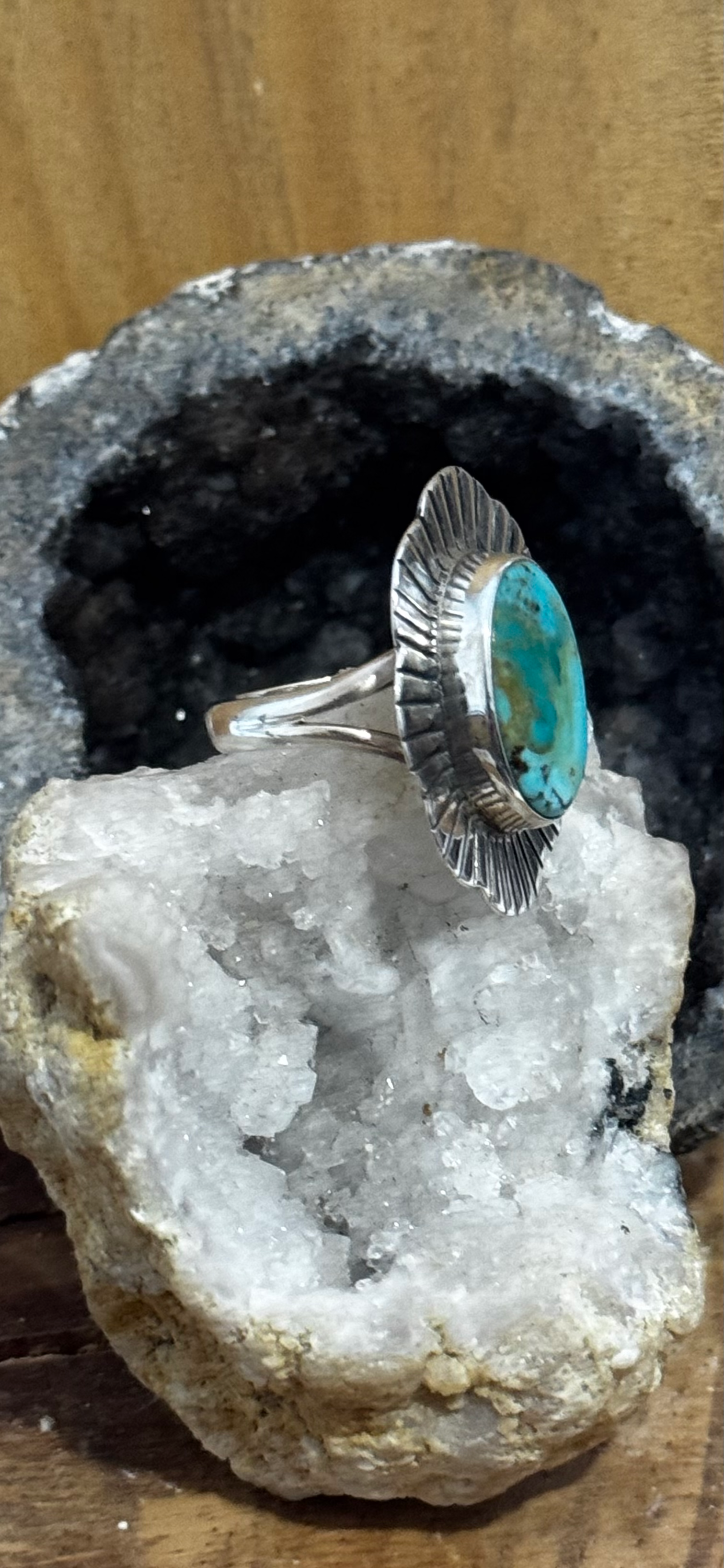 Shield Ring - Kingman Turquoise - Sterling Silver - Size 5.75