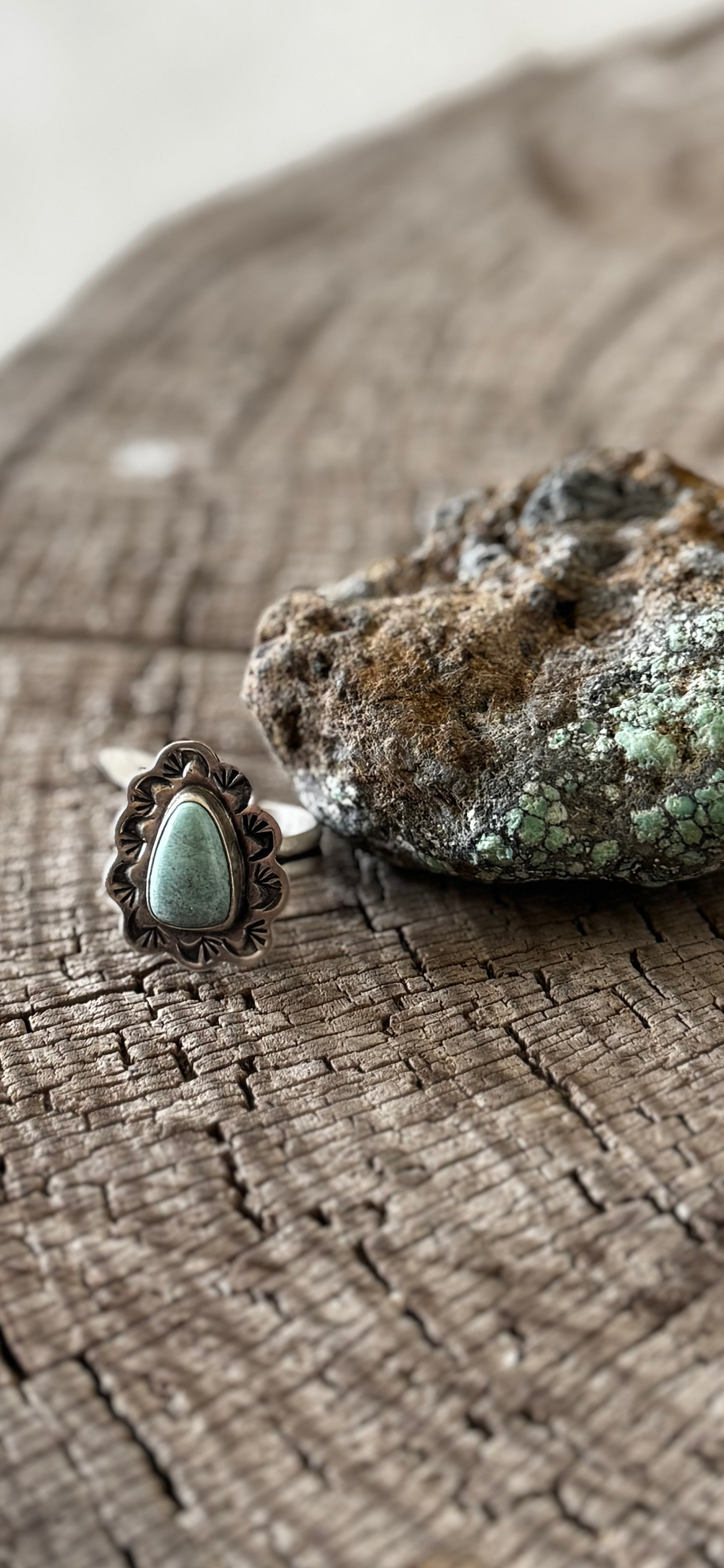 Teardrop Ring - Nevada Turquoise - Sterling Silver - Native Handmade - M&R Calladito (artist) - Size Adjustable