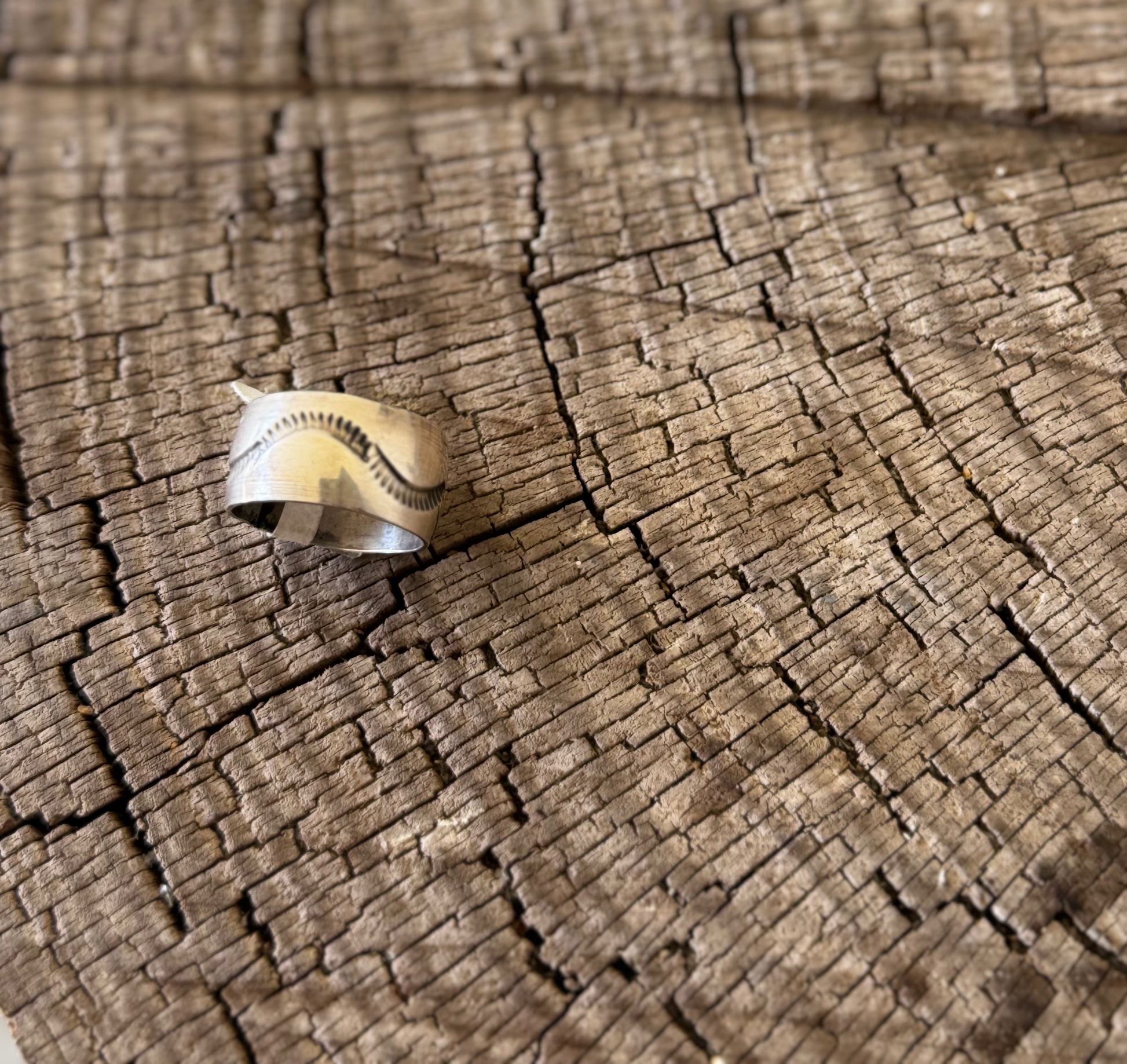 Thick Ring Band w/ Design - Sterling Silver - Size 7.25